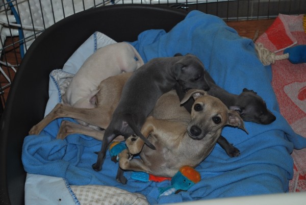 Tante Georgina beim bespaßen der Welpen, sie hat entschieden sich mit um Lilli's Welpen zu kümmern.