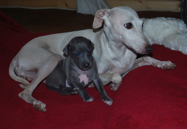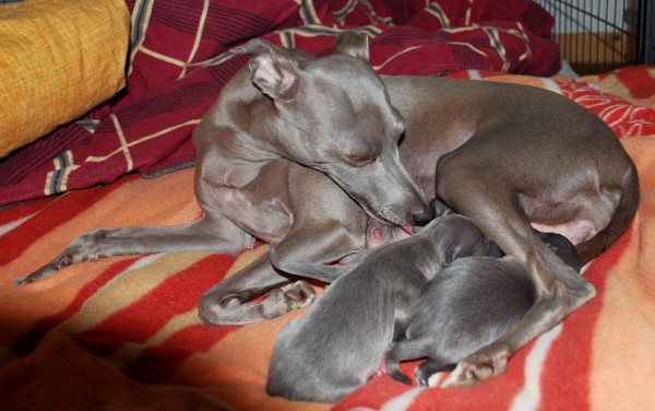 Georgina mit dem K-Wurf Kreacher, Kingsley und Knutbert